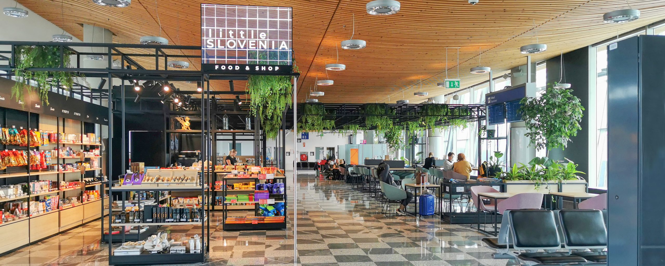Complete renovation of waiting lounge bar/shop at Ljubljana airport, Slovenia, 2024.